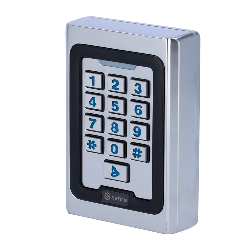 Mixed control unit with keyboard and built-in proximity. Capacity for 250 users. Two ON / OFF control relay outputs from 0 to 240 s. Proximity of maximum reach of 8 cm for TarGP / xxx card and 125 KHz key ring. Programming and deletion from the keyboard. EEPROM memory. Autoblocking after 8 wrong codes with alarm signal of 30 s. Polycarbonate keys. Power: 12 Vcc / Vca. Consumption 40 mA. (typical) / 100 mA. (maximum). Working temperature -30 to 50 ºC. IP65 waterproof. With self-protection, keyboard lighting, buzzer and push-button input. Dimensions: 110 x 85 x 40 mm.